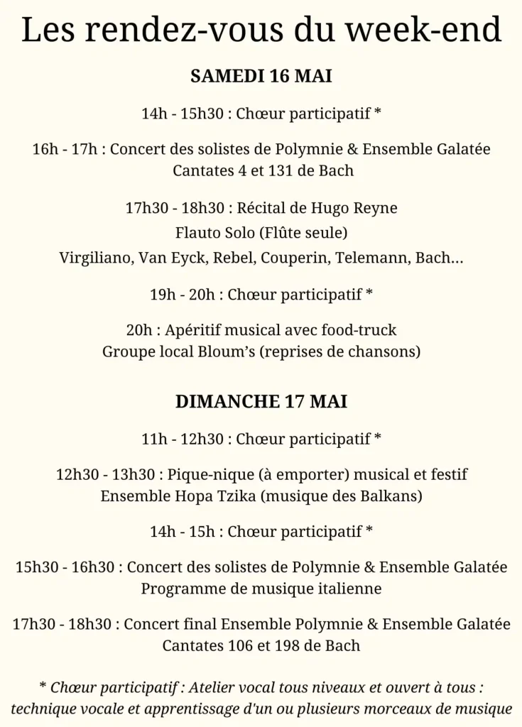 Des ateliers vocaux sont proposés pour toutes et tous sous la forme d’un chœur participatif tout au long du week-end.
